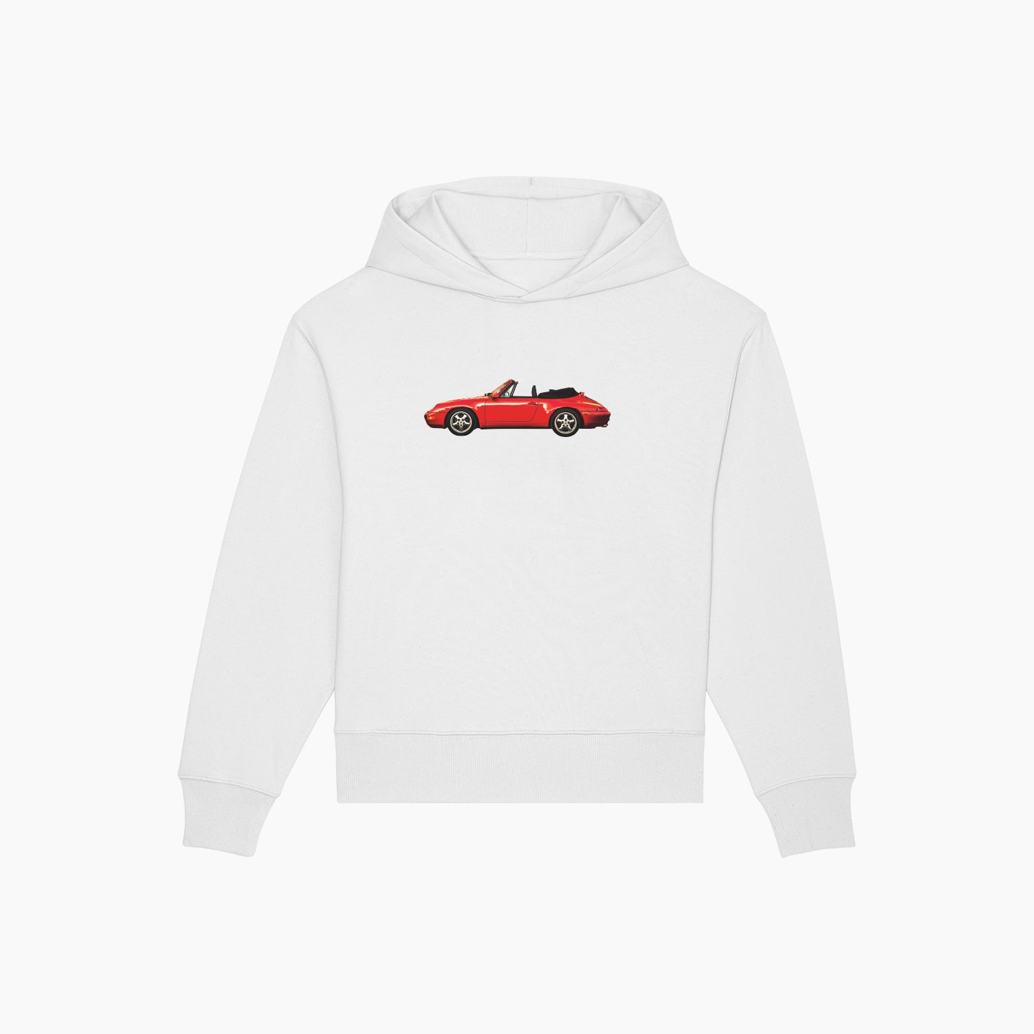 Our cropped pullover hoodie, made from a heavyweight 370gsm cotton-poly blend. Features dropped shoulders, exposed outside stitching, featuring our favourite 993.